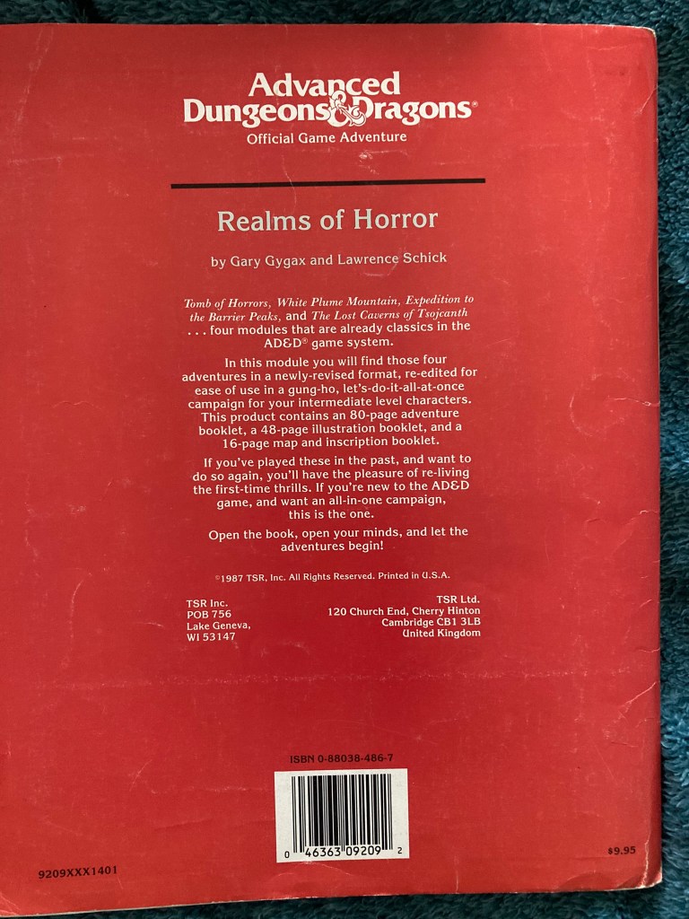PS I find it funny that they titled the collection “Realms of Horror,” because pretty much only Tomb of Horrors fits the “horror” description! I guess “Realms of Special” didn’t quite have the same ring…