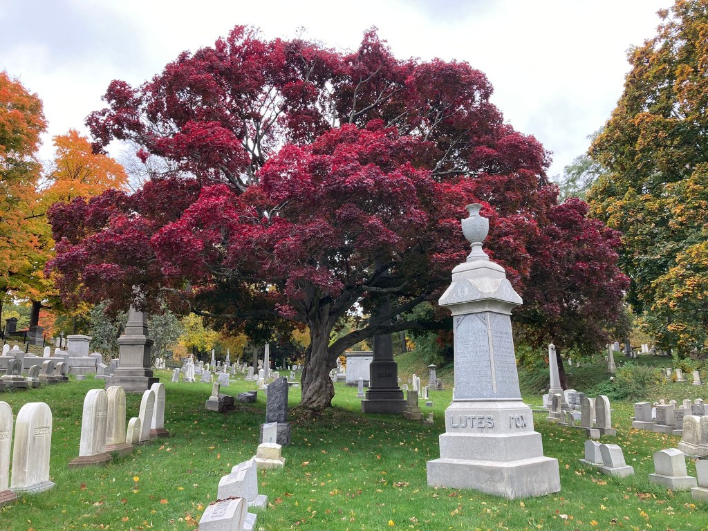 I also made a quick stop at Mount Hope Cemetery, an absolutely lovely retreat founded in 1838 and containing the final resting places of a number of important figures, such as Susan B. Anthony and Frederick Douglass. It is especially beautiful during the autumn, when the vibrant fall colors provide a magnificent contrast to the pale monument. I last had the opportunity to visit in 2010, and wrote a lengthy blog post at that time. My trip this week was shorter, but I thought I would share some photos that I took, which give another look at some of the sights.