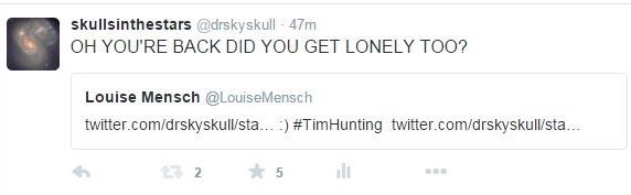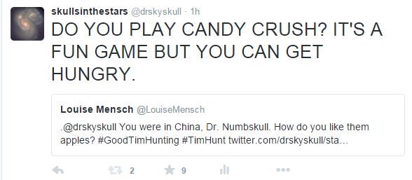 Finally she caught up with my “Hi I’m Dr. SkySkull” tweet: