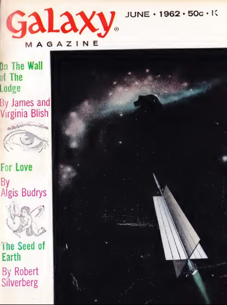 As you can see, “For Love” appeared in the June 1962 issue of Galaxy Science Fiction, and it is particularly noteworthy to me for coming about as close as I’ve seen in imagining how modern real invisibility devices are supposed to work!