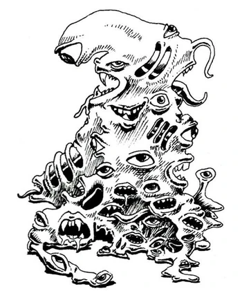 Now it reminds me of something else entirely! In Dungeons & Dragons, one of the classic monsters is the gibbering mouther, a large blob “composed entirely of mouths and eyes.”