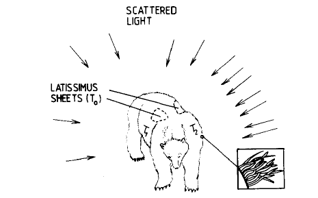 The latissimus sheets are muscle groups which have a rapid adjustable blood flow to keep the skin temperature stable and could be used as a temperature reference, to sense which part of the bear’s skin is warmer and thus which direction the sun is shining!