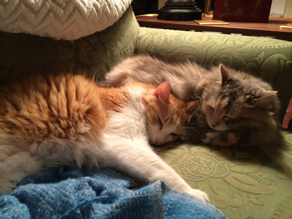A photo from December 2013, possible the first time I caught a photo of them cuddling a bit together.