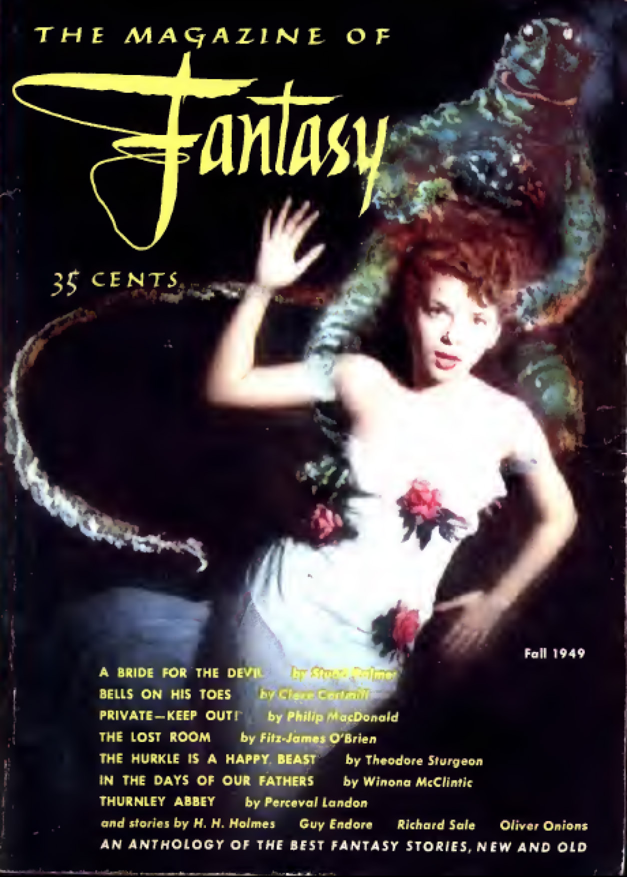 With this in mind, you’d think that I would’ve found a significant number of modern stories inspired by Perseus, but so far I’ve only found one: “Perseus Had a Helmet,” by Richard Sale, which appeared in the very first issue of The Magazine of Fantasy, Fall 1949. (I’ll give a few spoilers again, so please read the story first if you’re concerned.)