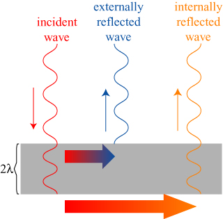 Now the externally and internally reflected waves are in phase with each other, and the reflection is enhanced!