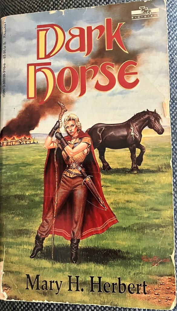 With all this in mind, I was quite surprised a while back when I came across the TSR-published 1990 novel Dark Horse, by Mary H. Herbert!