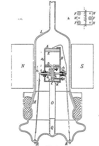 The first challenge in the experiment was to find a sufficiently fast-moving source of electrons. Most experiments on electrons used cathode ray tubes to generate them; “cathode rays” was the name for the mysterious stream of electric charge that emanated from the cathode in an evacuated tube and arrived at the anode. Experiments with cathode ray tubes had been the means by which Thomson confirmed the existence of the electron (and which I should blog about, too).