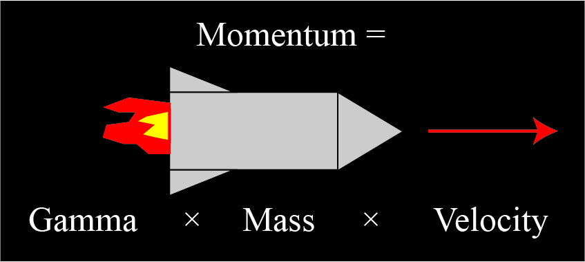 where v is the velocity and c is the speed of light. The factor γ goes to infinity as v approaches c; one consequence of this is that it is impossible (as far as we know) for an object with mass to reach the speed of light, as it would require an infinite amount of force to impart the infinite momentum of such an object.