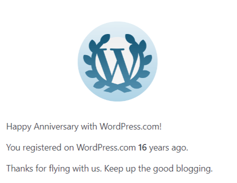 Just a quick note that I’ve been blogging now for 16 years, as of today, as WordPress reminded me!