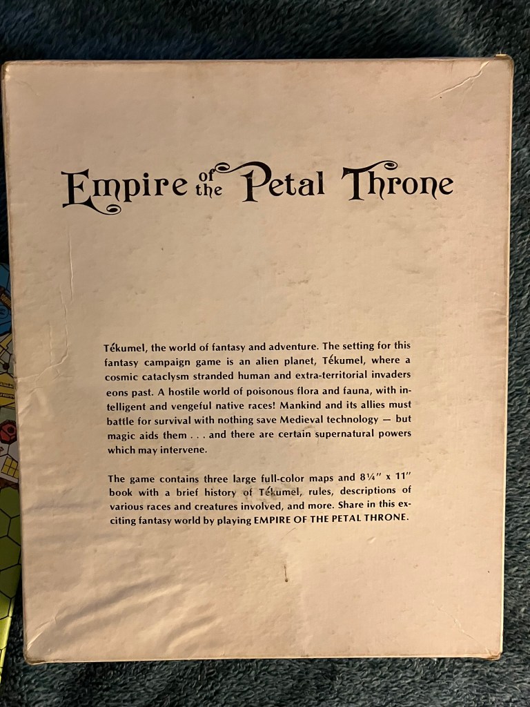 I still find it fascinating that TSR went right ahead and published Petal Throne in the first place! It is perhaps a sign of how TSR was not yet a “corporate” entity in that Gary Gygax and colleagues could see a potentially competitor in Petal Throne but turn them into a colleague, with a printed edition that was absolutely magnificent for its time (and arguably much prettier than 0th edition Dungeons & Dragons)!