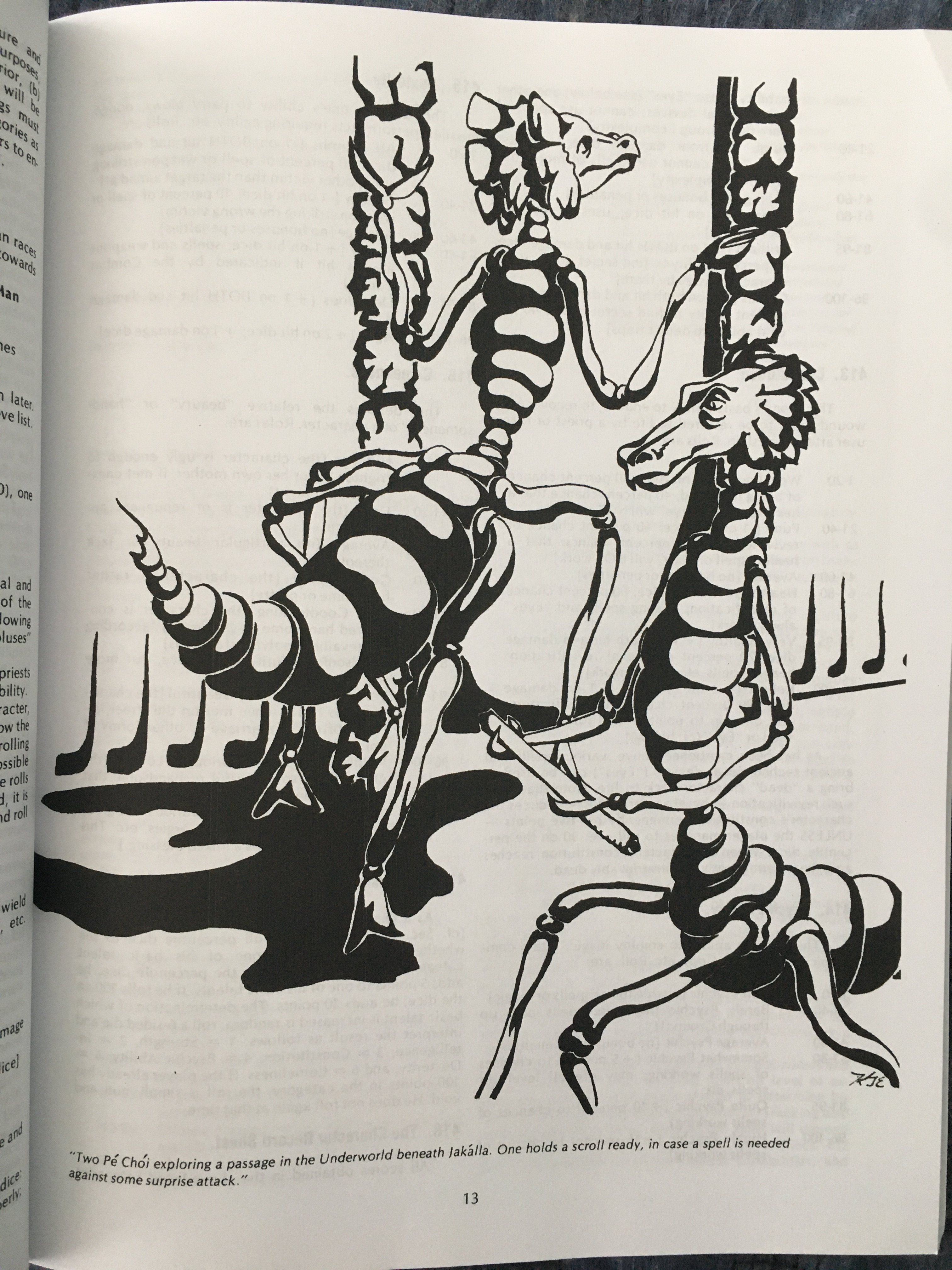 The monsters of Tékumel are also gloriously weird and unique. Here’s one example of an intelligent race on the planet.