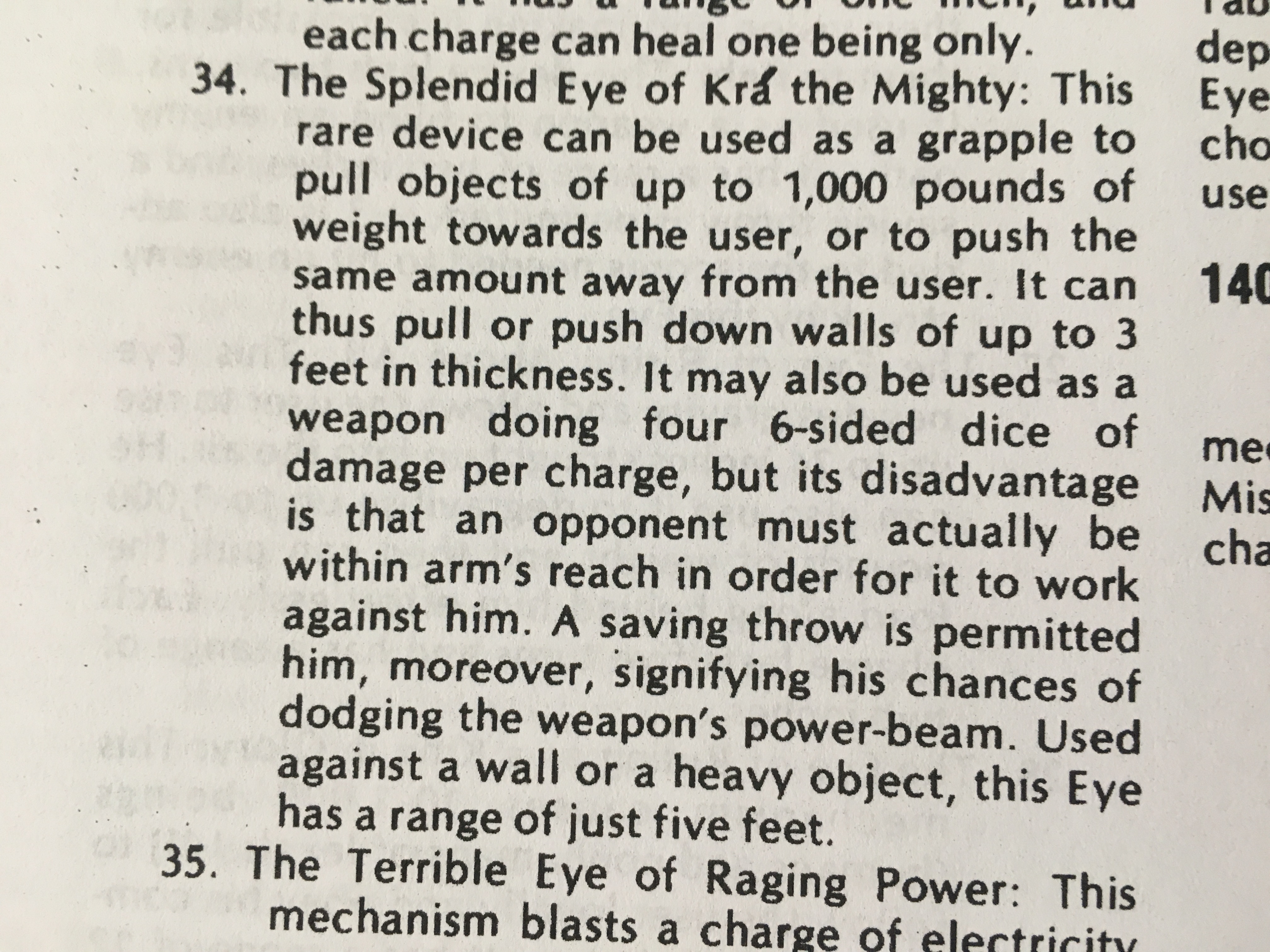 Most eyes produce effects comparable to magic spells, though not all are attacks. This eye, for example, can also be used to move heavy objects. Others can cause paralysis, instant death, or even raise someone from the dead.