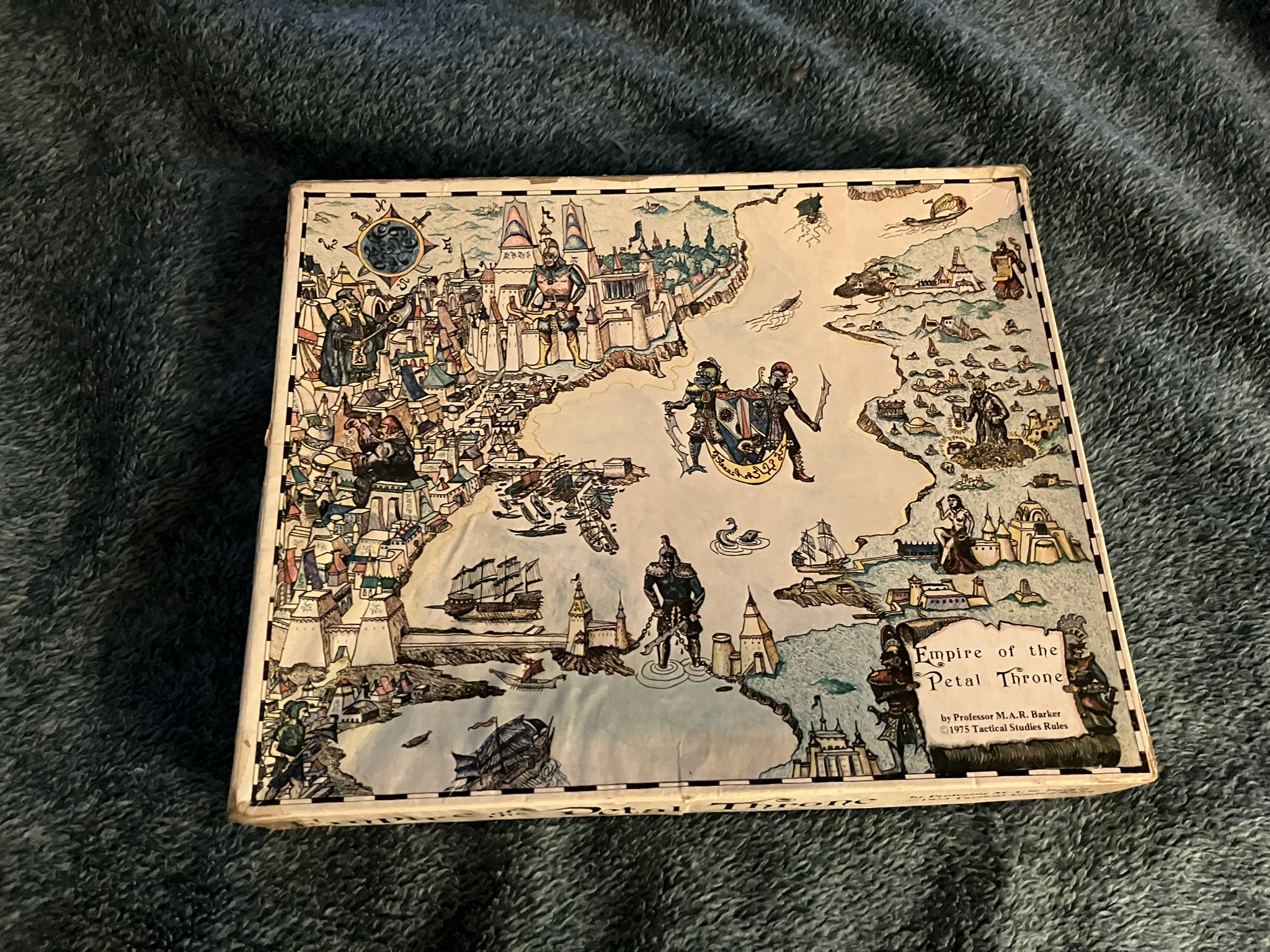 I’ve previously done an Old School thread on Petal Throne, but wanted to revisit it now that I have my own copy. This post will be a mix of my original thread plus photos of my acquisition. Let’s begin with the box: