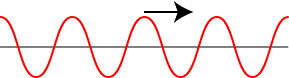 We have a snapshot in time here of a wave like a wave on a string, with repeated wiggles up and down as it travels to the right. If it oscillates at a single frequency, it is known as a monochromatic (“single color”) wave, and in much of optics we study waves that are at least approximately monochromatic. This works for lasers, but not with normal light sources like light bulbs or the sun — more on this momentarily.