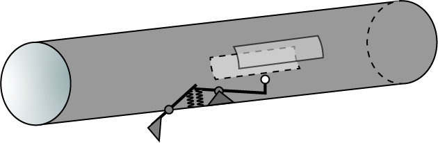 The two slots in the side of the device would allow only a collimated beam of light to pass through, which would not illuminate the interior of the device unless the trigger is pushed, which raises the ball into the beam, illuminating the entire tube. I was unable to find any sketch of the device in any of the articles I perused, and the “trigger” mechanism I’ve drawn is just a rough guess of how it might work. No description is given as to how the light is collimated to pass through the tube; I could imagine either a beam of light is collimated separately and the Tenebroscope is inserted into the beam, or the scope has long tunnels attached to each of the side apertures, basically collimating any light that happens to be in the room. My guess it the latter, but I’m too lazy to try and draw that version of the device.