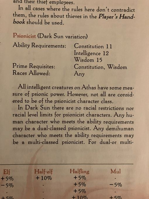 Adding to the power of PCs on Athas is that all characters have some latent psionic ability. One can also play a dedicated psionicist, who is the mental power version of a wizard.