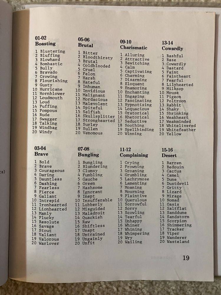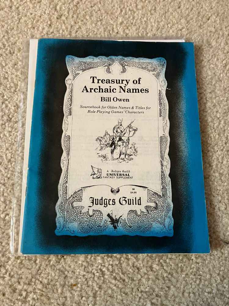Judges Guild produced supplements for Dungeons and Dragons, and produced some of the most impressive non-TSR gaming products at the time. This particular product is exactly what it says: a collection of medieval type names for quick use!