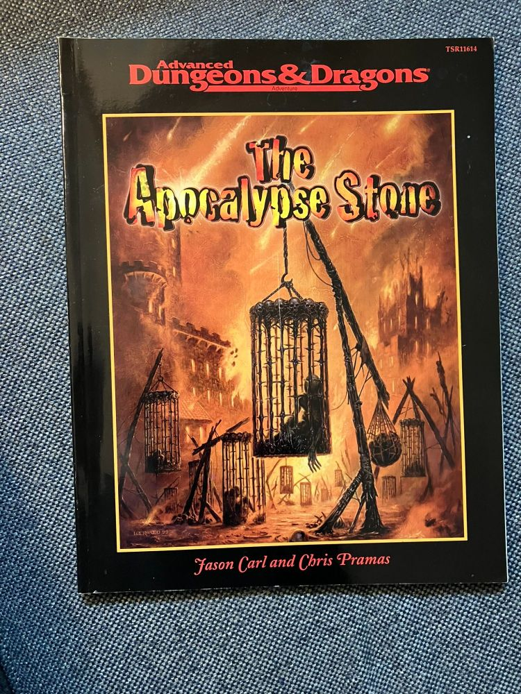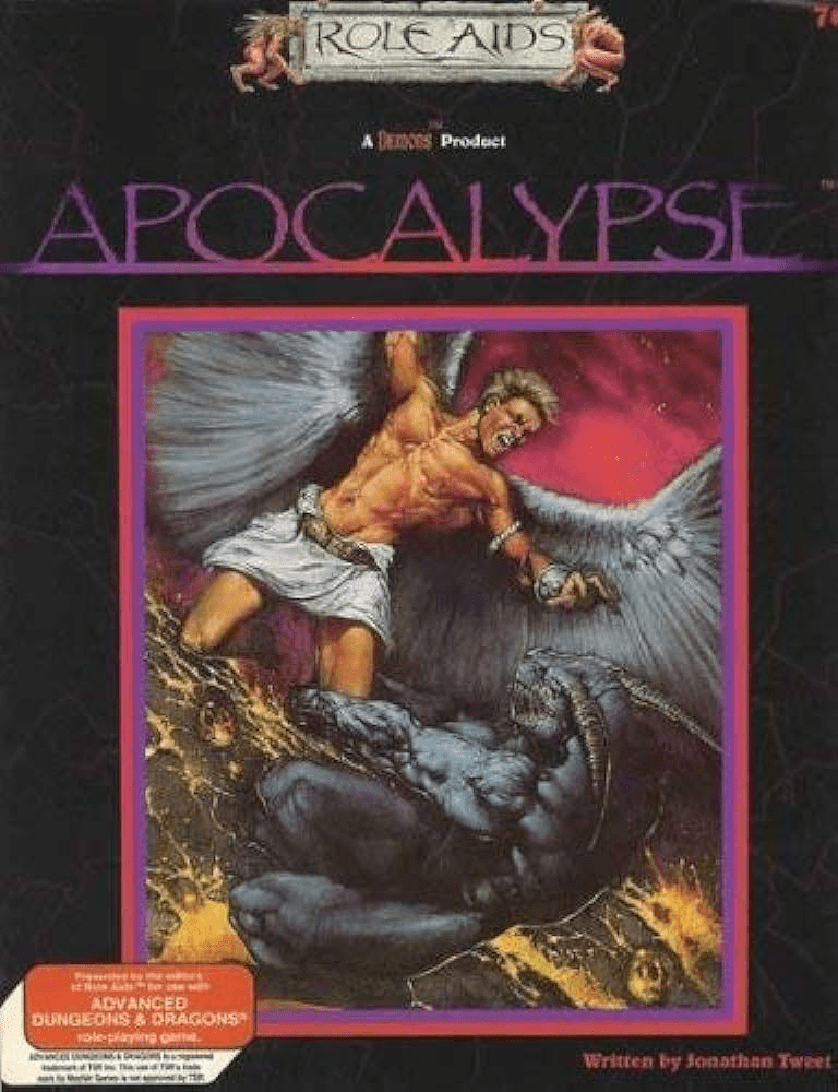 PS The Apocalypse Stone isn’t the first adventure to explicitly bring about the apocalypse! The Role Aids box set Apocalypse, released in 1993, also provides a way to end a campaign world in spectacular fashion. That same year, TSR sued Mayfair Games for trademark violation, and though they largely won the court case, Mayfair ended up selling the Role Aids line to TSR a few years later. It’s not clear if The Apocalypse Stone was inspired by Role Aids, but it’s plausible.