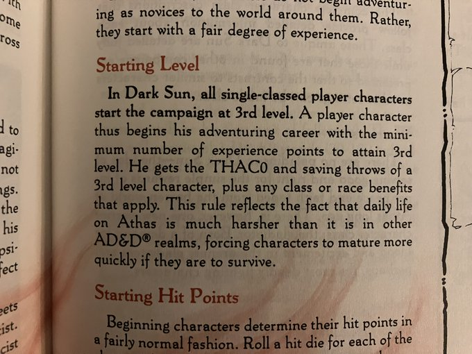 Dark Sun brought some significant rules changes. For example, all PCs start at 3rd level! This is said to be due to the harshness of the world…