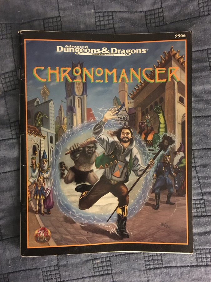 Speaking of time travel, Jaquays also painted the cover for the 1993 product Chronomancer!