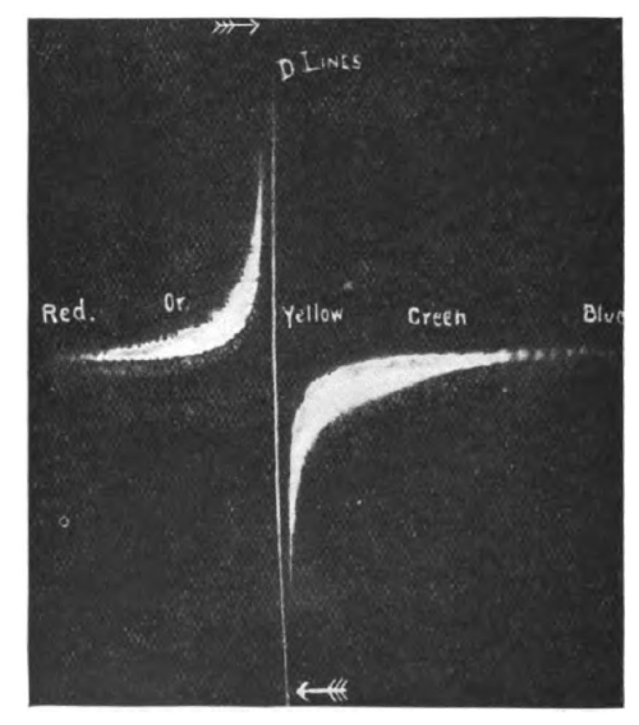 Wood’s figure of the separated spectrum, taken from his paper, is shown below. This is a drawing that attempts to capture the appearance of the colored spectrum.