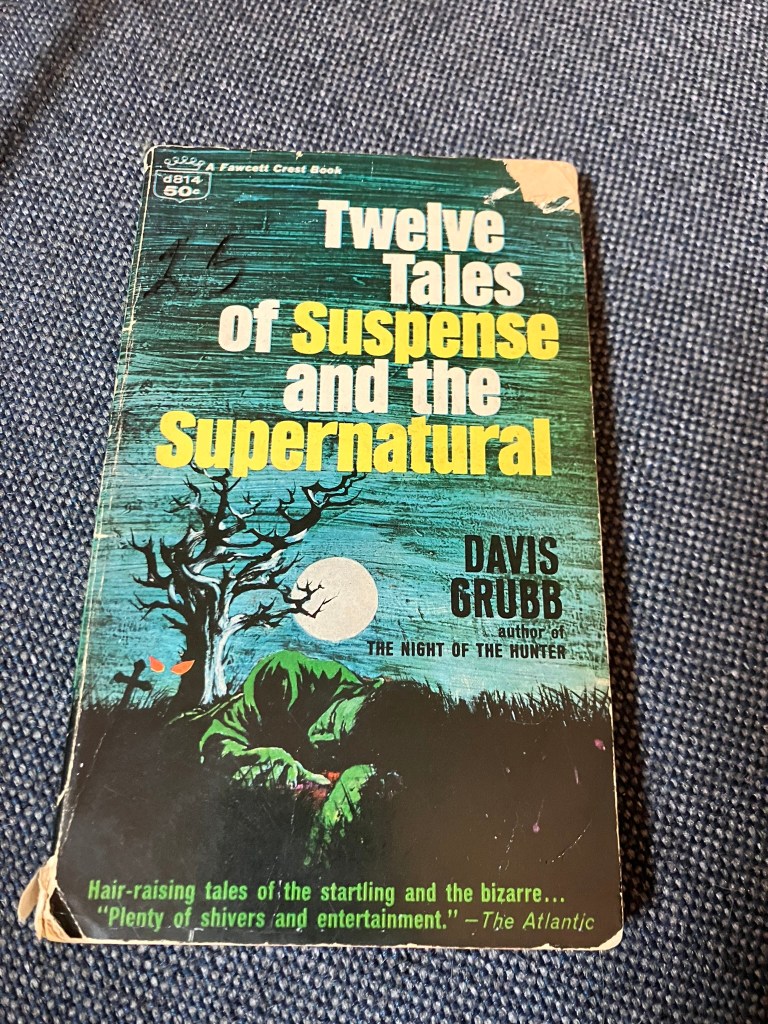 I was browsing my shelves for books to read that wouldn’t take that much time, and found this gem I had forgotten purchasing at all: Twelve Tales of Suspense and the Supernatural, by Davis Grubb (1965).