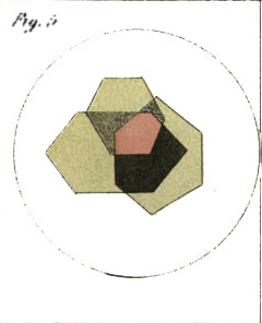 Herapath tested out the polarizing properties of his crystals in detail, looking at how crystals overlapped at different angles will block light, as illustrated by his figure below.