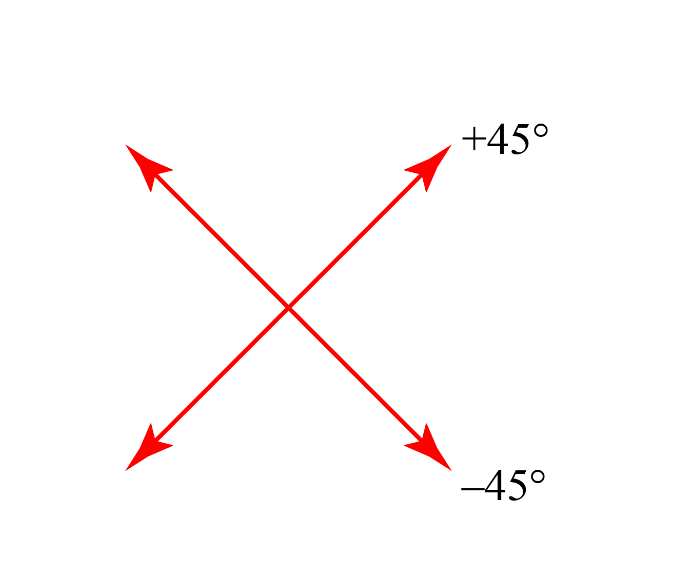 But there is nothing special about the up-down/left-right basis; any two perpendicular oscillations can be used to describe any general oscillation. We could, for example, use the two 45 degree states as our basis.