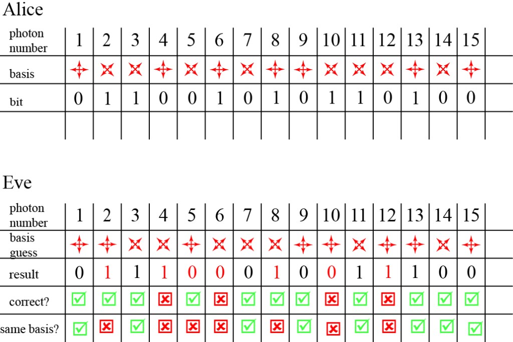 - If we measure the state of a photon in the wrong basis, we will change the state of the photon.