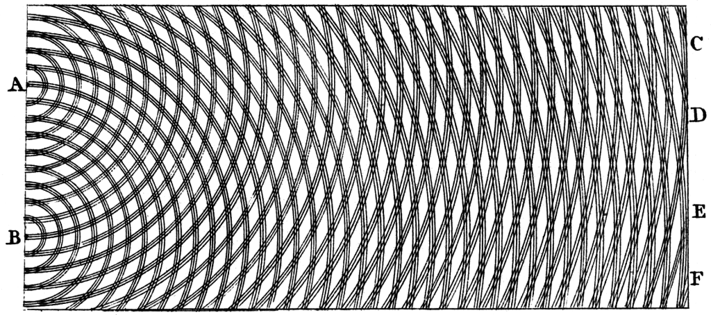 The physics of nonradiating sources is a direct consequence of wave interference. When multiple waves interfere, they can produce regions of destructive interference where there is no wave amplitude at all; the original and most famous demonstration of this is Young’s interference experiment where waves from two pinholes interfere with each other; here is how Young drew it in the early 1800s.