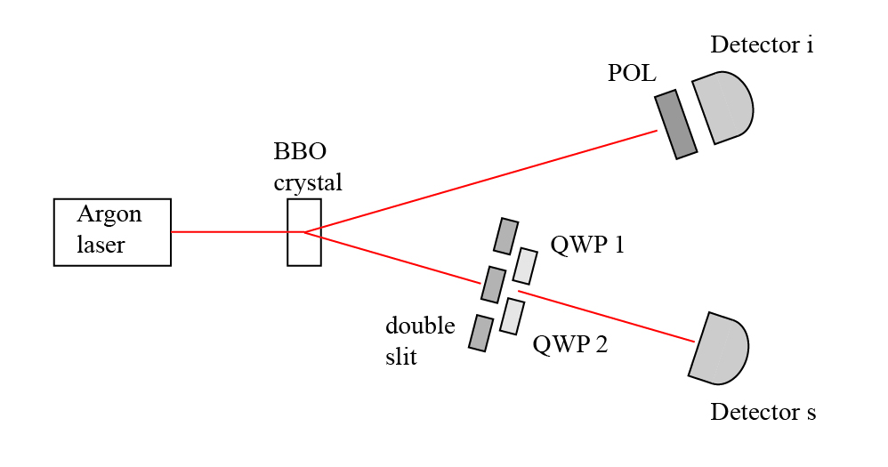 Our explicit quantum eraser discussion follows the experimental setup of Walborn et al.3, which was the first to perform quantum erasure with a Young-type interferometer. Let’s start by introducing a (simplified) version of the experimental setup.