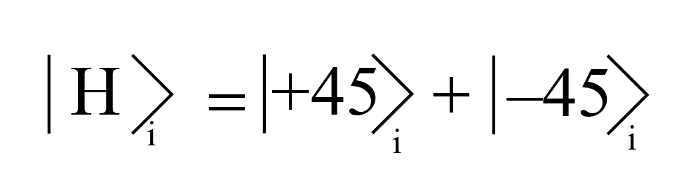 This tells us that if we measure an H or V photon with a +45/-45 analyzer, we have a 50% chance of getting either case! In wavefunction form, we can write the idler photon H wavefunction in the form: