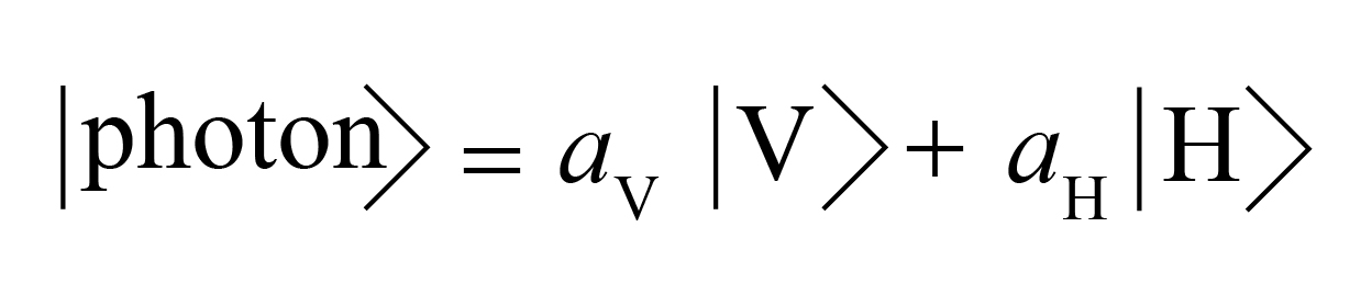 Here aV and aH represent the wave amplitudes. If we perform a measurement to determine whether the photon is horizontally or vertically polarized, quantum physics says that the probability of getting V for example is