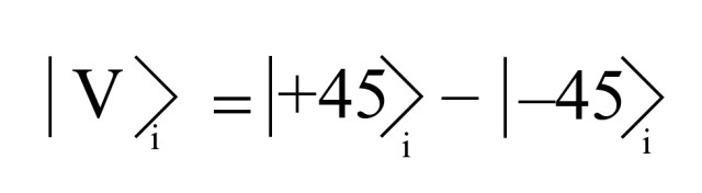 Now this wavefunction says, in equation form, “a vertically polarized signal photon will have a – polarization contribution coming from hole 1 and a + contribution coming from hole 2.”