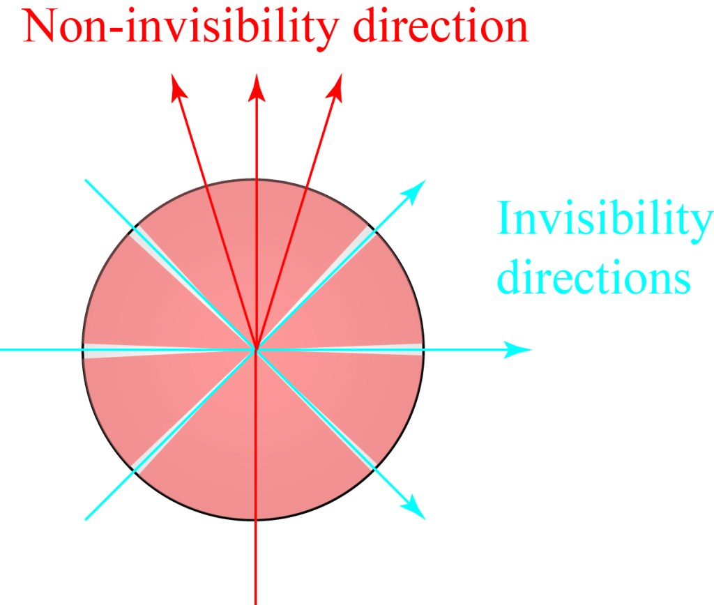 So I’ve written a lot about the physics of invisibility on this blog and have even written a popular science book on the subject, but many people may not know that I also still occasionally do some research on invisibility physics! I recently had a paper come out on invisibility in the Journal of the Optical Society of America A, and it was even made an “Editor’s Pick” for reading! I thought I would do a short blog post explaining what it’s about. The paper, titled “Objects invisible from multiple directions,” was written by my now former student Dr. Ray Abney and myself; it constituted the final bit of research for Ray’s PhD.